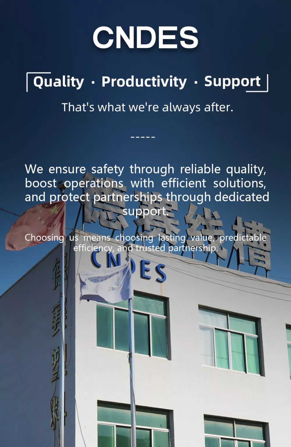 CNDES se zavezuje, da bo postal vaš zanesljiv partner pri dobavi žičnih kanalov! Če imate še kakšna vprašanja, se obrnite na!