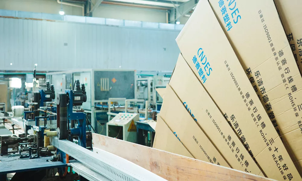 CNDES je ponosen na svoje močne in stabilne dobavne zmogljivosti, opremljene z naprednimi proizvodnimi zmogljivostmi. Naša tovarna na 10 hektarjih se ponaša s 13 popolnoma avtomatiziranimi proizvodnimi linijami z dnevno proizvodnjo 30.000 metrov PVC kabelskih polic. Ta napredna proizvodna konfiguracija zagotavlja hitro, stabilno proizvodnjo in zanesljivo dostavo ter z lahkoto obravnava tudi naročila velikih količin.