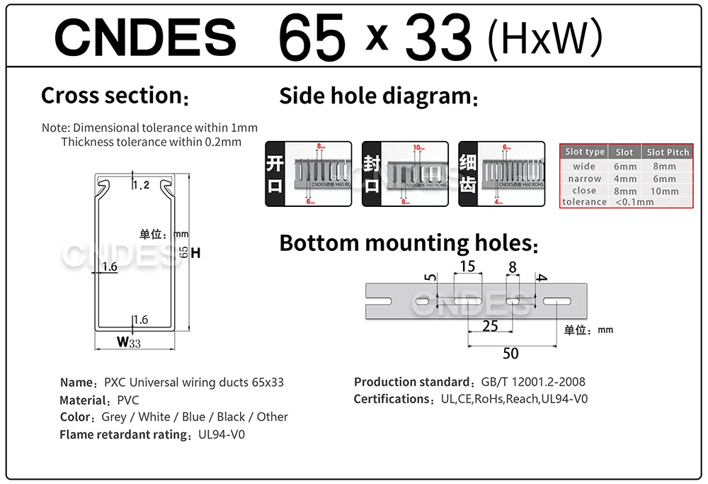 Pri CNDES smo zasnovali kanal za napeljavo kablov kakovosti 65 × 33 posebej za projekte, kjer je prostor omejen, vendar je organizacija kablov še vedno pomembna. Ta kompaktni usmerjevalni kanal pomaga monterjem, da ostanejo napeljave čiste, zaščitene in enostavne za upravljanje znotraj električnih plošč, krmilnih omaric in kompaktnih ohišij.